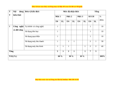 Mức độ nhận thức Tổng T kiến thức Mức 1 Mức 2 Mức 3 Số CH % điểm TN TL TN TL TN TL TN TL 1