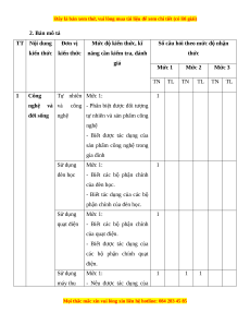 năng cần kiểm tra, đánh thức giá Mức 1 Mức 2 Mức 3 TN TL TN TL TN TL 1 Công Tự nhiên Mức 1: 1