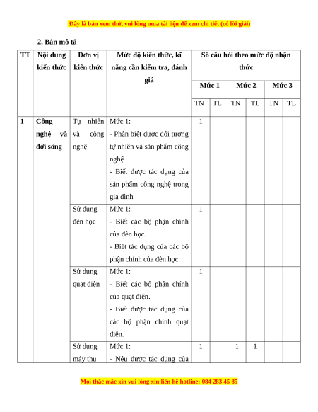 Đây là bản xem thử, vui lòng mua tài liệu để xem chi tiết (có lời giải) 2. Bản mô tả TT Nội dung Đơn vị