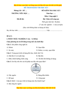 TRƯỜNG TIỂU HỌC … Năm học: …. Môn: Công nghệ 3 Mã đề thi: