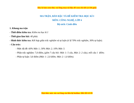 - Tailieugiaovien.com.vn giới thiệu bộ đề cuối kì 1 gồm đầy đủ ma trận và lời giải chi tiết môn Công nghệ lớp 4 Cánh diều mới nhất nhằm giúp Giáo viên có thêm tài liệu tham khảo ra đề thi Công nghệ lớp 4.
