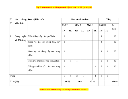 - Mức độ đề: 60% Mức 1; 30% Mức 2; 10% Mức 3.