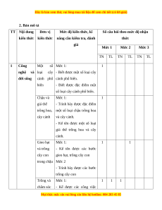 năng cần kiểm tra, đánh thức giá Mức 1 Mức 2 Mức 3 TN TL TN TL TN TL 1 Công Một số Mức 1: 1