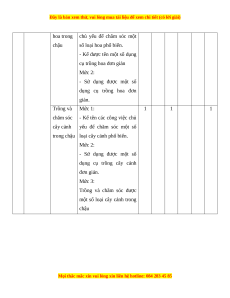 Trồng và chăm sóc cây cảnh trong 1 1 1 2 1 30 chậu Tổng 5 1 2 1 1 7 3 Tỉ lệ (%) 60 % 30 % 10 % 100%