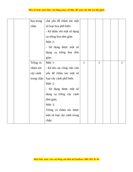 - Trình bày được các bước trồng cây con Trồng và Mức 1: 1 1 1
