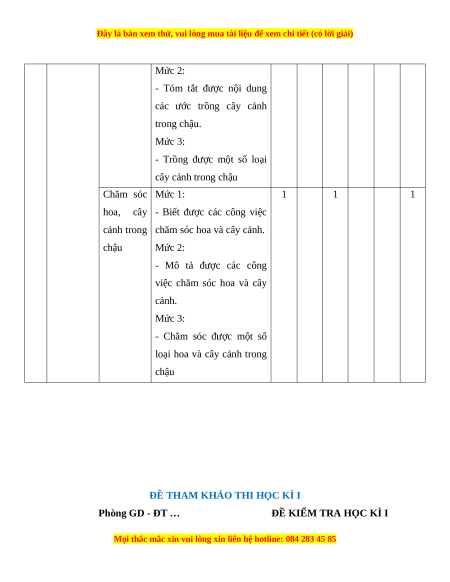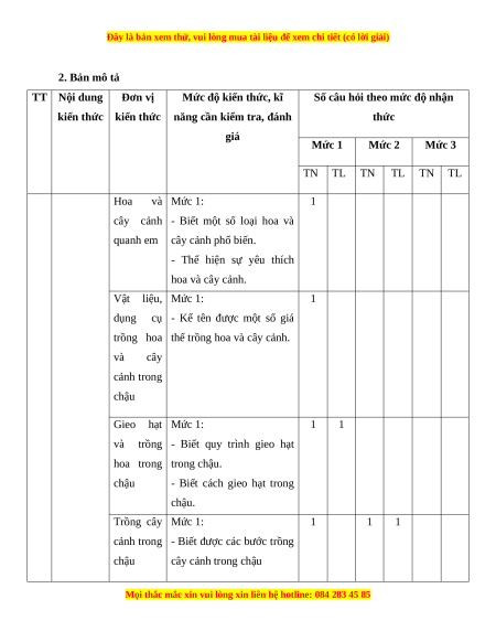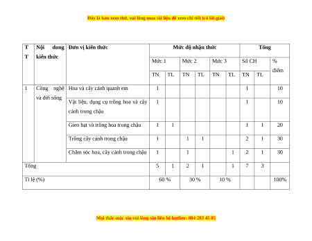 năng cần kiểm tra, đánh thức giá Mức 1 Mức 2 Mức 3 TN TL TN TL TN TL Hoa và Mức 1: 1