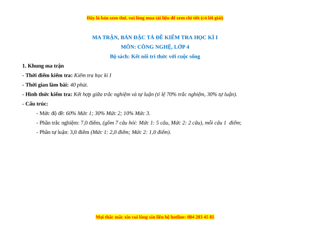 - Tailieugiaovien.com.vn giới thiệu bộ đề cuối kì 1 gồm đầy đủ ma trận và lời giải chi tiết môn Công nghệ lớp 4 Kết nối tri thức mới nhất nhằm giúp Giáo viên có thêm tài liệu tham khảo ra đề thi Công nghệ lớp 4.