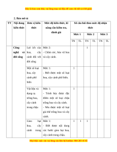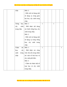- Biết được một số loại cảnh phổ hoa, cây cảnh phổ biến. biến Vật liệu và Mức 1: 1 dụng cụ - Trình bày được đặc trồng hoa,