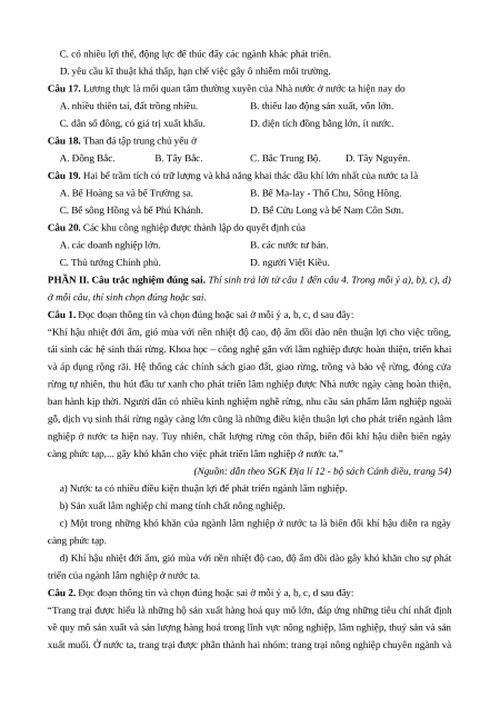 Câu 20. Các khu công nghiệp được thành lập do quyết định của A. các doanh nghiệp lớn. B. các nước tư bản. C. Thủ tướng Chính phù. D. người Việt Kiều.