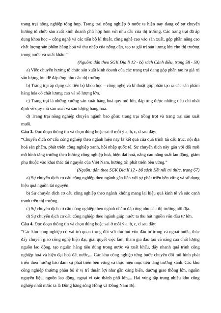 Câu 13. Cơ cấu công nghiệp chuyển dịch theo hướng tích cực nhằm phù hợp với