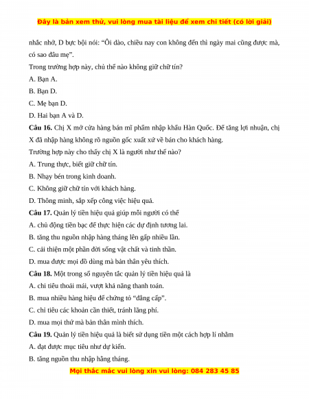 Câu 14. Nhận định nào sau đây đúng khi bàn về vấn đề giữ chữ tín?