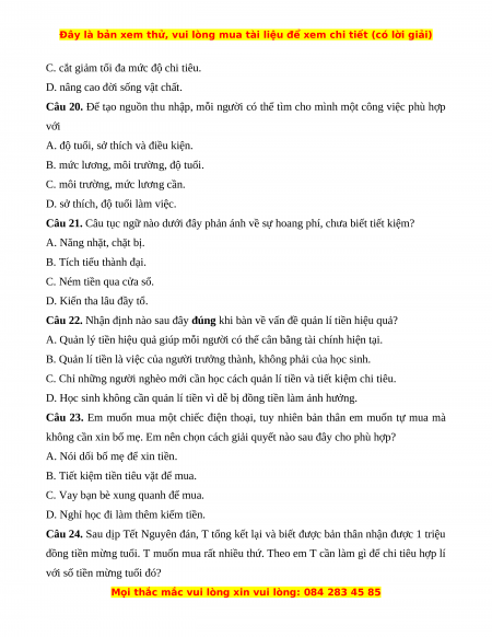 Câu 19. Quản lý tiền hiệu quả là biết sử dụng tiền một cách hợp lí nhằm