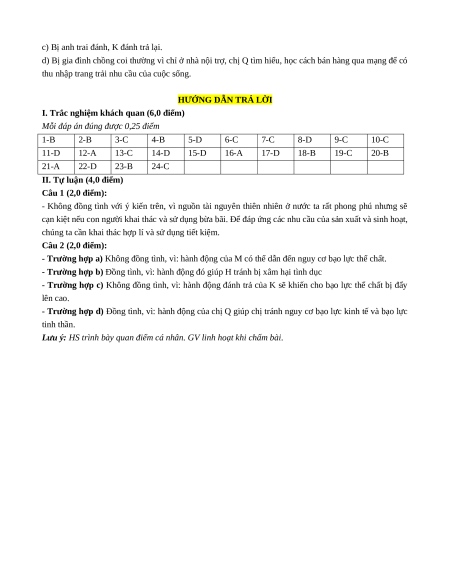 Lưu ý: HS trình bày quan điểm cá nhân. GV linh hoạt khi chấm bài.