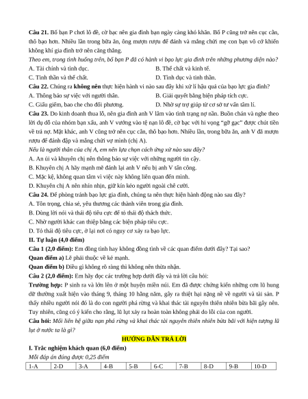 Câu 21. Bố bạn P chơi lô đề, cờ bạc nên gia đình bạn ngày càng khó khăn. Bố P cũng trở nên cục cằn,