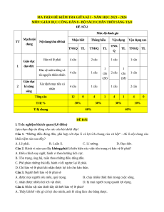 MA TRẬN ĐỀ KIỂM TRA GIỮA KÌ I - NĂM HỌC 2023 – 2024