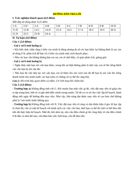 Lưu ý: HS trình bày quan điểm cá nhân. GV linh hoạt khi chấm bài.