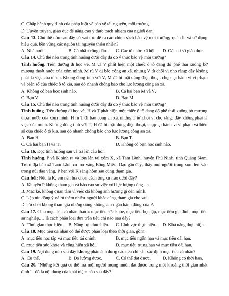 Câu 16. Đọc tình huống sau và trả lời câu hỏi: