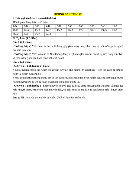 Lưu ý: HS trình bày quan điểm cá nhân. GV linh hoạt khi chấm bài.
