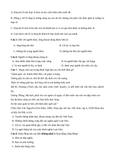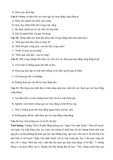 Câu 8. Hoạt động nào sau đây không phải là hoạt động cộng đồng? A. Đền ơn đáp nghĩa. B. Bảo vệ môi trường. C. Buôn bán hàng cấm. D. Hiến máu nhân đạo.