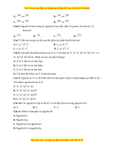 Câu 6: Nguyên tử nào trong các nguyên tử sau đây chứa 19 proton, 20 neutron, 19 electron? A. . B. . C. . D. .
