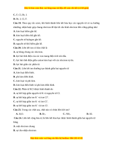 Câu 24. Liên kết cộng hóa trị là liên kết hóa học được hình thành giữa hai nguyên tử bằng A. một electron chung