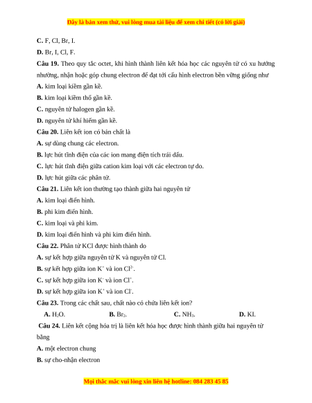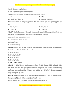 Câu 19. Theo quy tắc octet, khi hình thành liên kết hóa học các nguyên tử có xu hướng