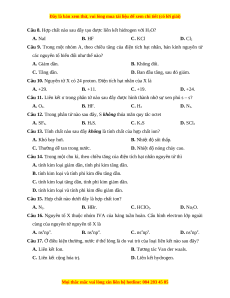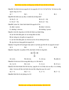Câu 20. Cation Na+ được hình thành khi nguyên tử Na A. nhận 1 proton. B. nhận 1 electron.