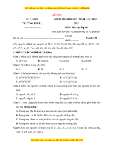 KIỂM TRA HỌC KỲ I NĂM HỌC 2022 - TRƯỜNG THPT… 2023 --------------------