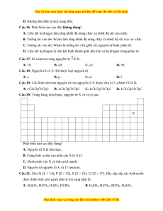 Câu 24: Sự kết hợp của các nguyên tử nào sau đây không tạo hợp chất dạng X
