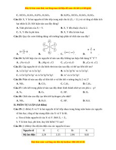 Câu 22: X, Y là hai nguyên tố liên tiếp trong một chu kì (ZX < ZY) và có tổng số điện tích