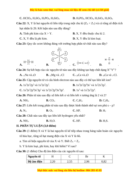 Câu 23: Quy tắc octet không đúng với trường hợp phân tử chất nào sau đây? A. . B. . C. . D. .