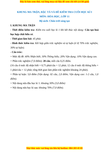 - Tailieugiaovien.com.vn giới thiệu bộ 3 đề cuối kì 1 gồm đầy đủ ma trận và lời giải chi tiết môn Hóa học 11 Chân trời sáng tạo mới nhất năm 2023 - 2024 nhằm giúp Giáo viên có thêm tài liệu tham khảo ra đề thi Hóa học lớp 11.