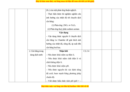 Mức độ nhận thức biết dụng Chủ đề kiến thức hiểu dụng (TNKQ cao (TNKQ) (TL) ) (TL) (1) (2) (3) (4) (5) (6) (7) (8) 1 Cân bằng 1. Khái niệm về Nhận biết hoá học