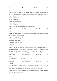 Câu 9. Hỗn hợp X gồm các alkane: pentane (ts = 36,1oC), heptane (ts =