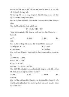 Câu 14. Trong khí quyển, phản ứng khởi đầu cho quá trình tạo ion nitrate là A. 2NO + O2 → 2NO2. B. N2 + 3H2 → 2NH3. C. N2 + O2 ⇌ 2NO.