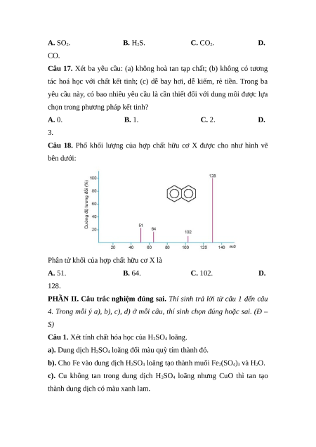 Câu 17. Xét ba yêu cầu: (a) không hoà tan tạp chất; (b) không có tương