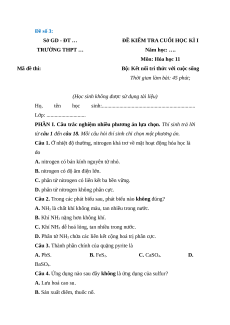 ĐỀ KIỂM TRA CUỐI HỌC KÌ I TRƯỜNG THPT … Năm học: …. Môn: Hóa học 11 Mã đề thi: