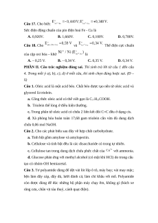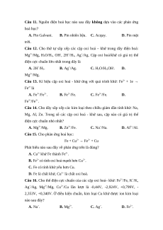 Câu 16. Cho thế điện cực chuẩn của các cặp oxi hoá– khử: Fe2+/Fe, K+/K,