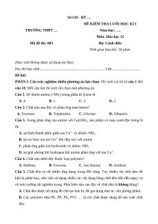 ĐỀ KIỂM TRA CUỐI HỌC KÌ I TRƯỜNG THPT … Năm học: …. Môn: Hóa học 12 Mã đề thi: 003 Bộ: Cánh diều