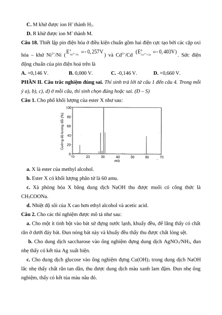 Câu 17. Thế điện cực chuẩn của các cặp oxi hoá - khử của kim loại M+/M và R2+/R