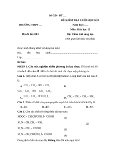 ĐỀ KIỂM TRA CUỐI HỌC KÌ I TRƯỜNG THPT … Năm học: …. Môn: Hóa học 12 Mã đề thi: 003
