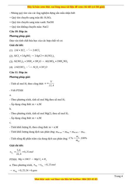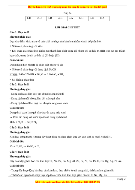 Câu 1 (NB): Dùng dung dịch nào sau đây để phân biệt nhôm và sắt? A. HCl B. Cu(NO3)2 C. NaCl D. NaOH