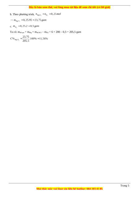 (Biết Ca = 40, O = 16, Mg = 24, Cl = 35,5, H = 1) Trang 1