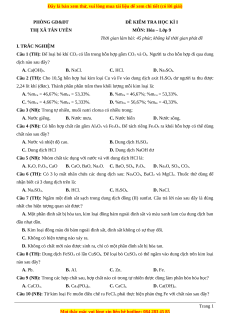 Đề thi cuối kì 1 Hóa học 9 Phòng GD&ĐT Thị xã Tân Xuyên