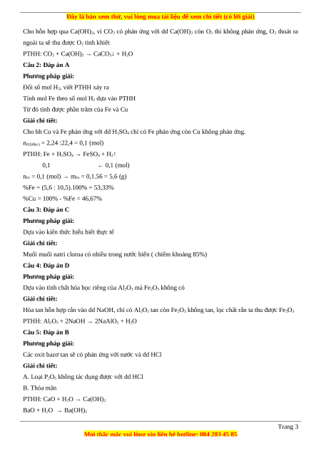 Cho hỗn hợp khí lội qua dd có phản ứng với CO2 nhưng không phản ứng với O2 Giải chi tiết: Trang 2