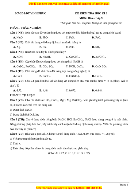 (Cho: Al = 27, O = 16, H = 1,S = 32) Trang 1
