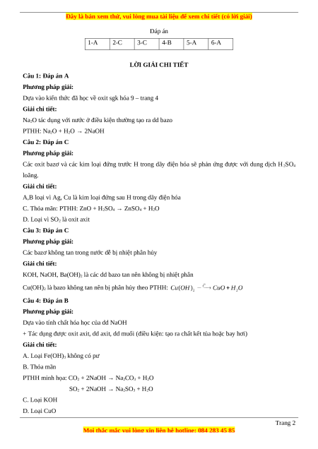 PTHH minh họa: CO2 + 2NaOH → Na2CO3 + H2O SO2 + 2NaOH → Na2SO3 + H2O C. Loại KOH D. Loại CuO Trang 2