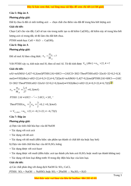 Câu 5 (TH): Chất dùng để khử chua đất trồng trọt trong nông nghiệp là A. CaO. B. CaSO4. C. Ca(NO3)2. D. CaCl2.