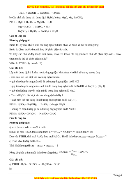 a) PTHH: Al2O3 + 3H2SO4 → Al2(SO4)3 + 3H2O b) Trang 4