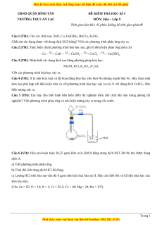 + Đề thi học kì 1 Hóa học năm 2023 trường THCS Trần Quốc Toản – Quận Bình Tân;
